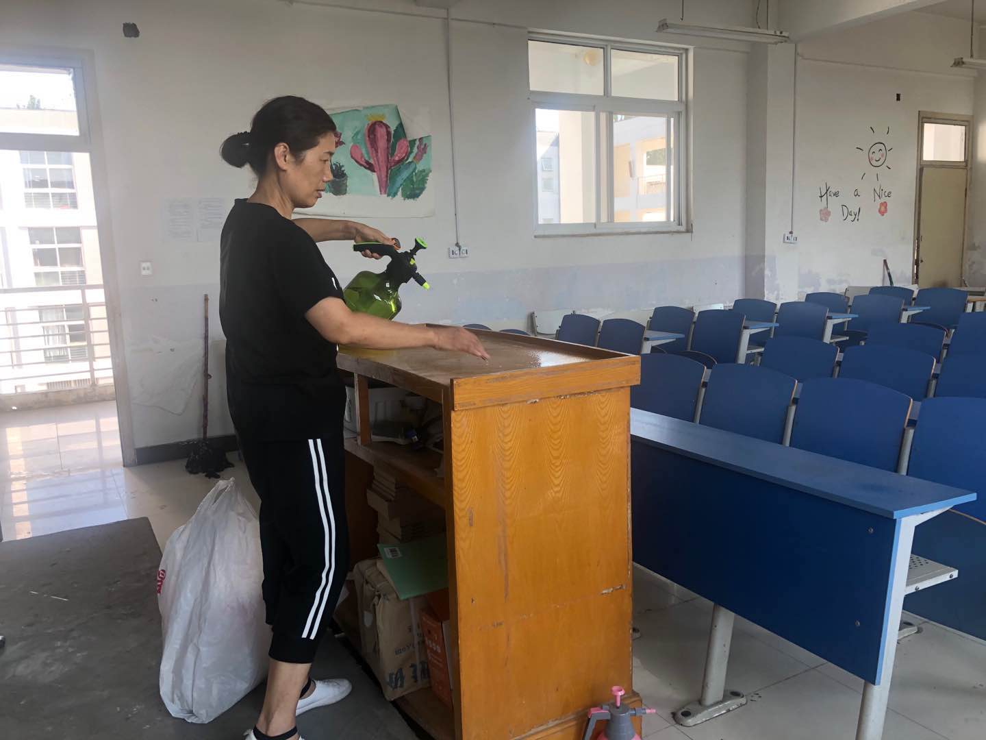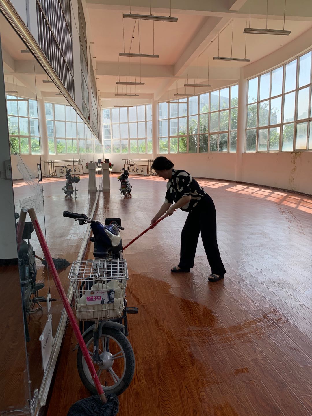 上午9时,全体教工在一楼多功能演播厅集合,经理穆向阳对卫生清洁打扫工作进行了细致安排和培训指导,向大家详细讲解了打扫过程中的注意事项。随后,全体教师们拿起脸盆、毛巾、拖把等劳动工具,在院领导班子的带领下进入各个教室、琴房、实训室、舞蹈房打扫卫生。全体教师不顾脏、不怕苦、不喊累。除尘、扫地、擦拭窗台、墙面、桌凳、拖地等。经过一上午的打扫,干净整洁、温馨和谐、宽敞明亮的教室、琴房、实训室、舞蹈教室展现在大家面前。
