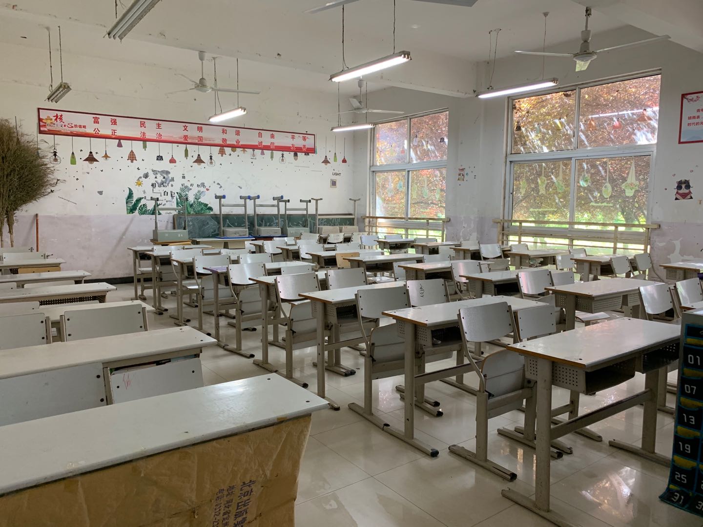 (图为方方老师带着还未开学的孩子在整理实训室物品)
