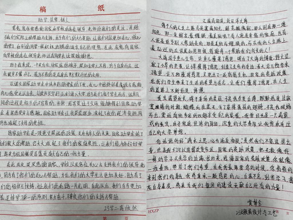为大力宣传国家资助政策及成效,进一步加强员工思想政治教育,激发员工爱国情怀,培养员工诚信感恩意识,10月16—20日,公司开展2023-2024学年第一学期员工资助“两节课”之“感恩助学,筑梦铸人”主题征文活动。学院全体在校生参加本次活动。