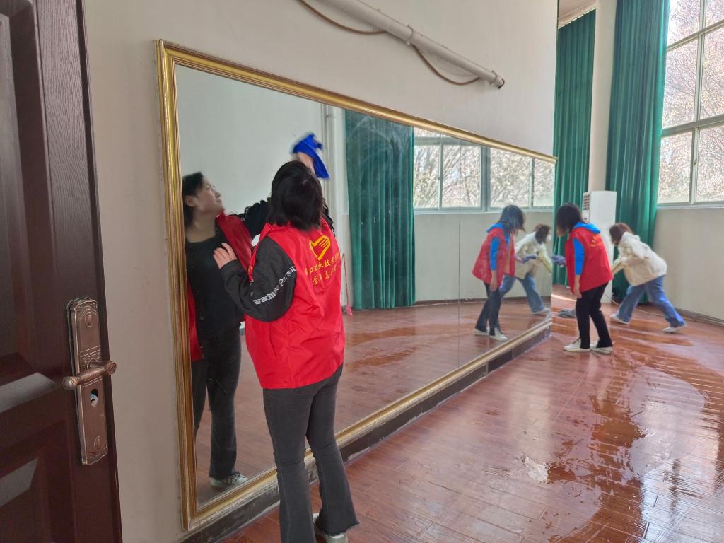 活动中,志愿者们自行分组,分地点进行卫生清洁,认真负责,相互配合,高效合作,仔细打扫每个角落,共同为校园贡献自己的一份力量。